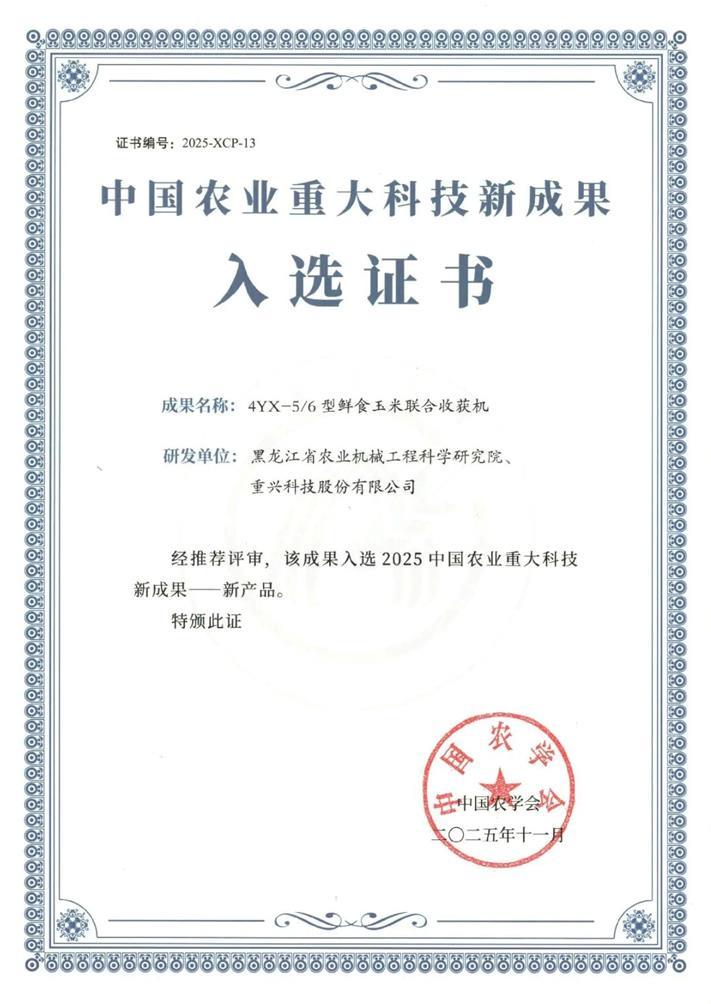 近日,中國(guó)農(nóng)學(xué)會(huì)正式揭曉2025年度中國(guó)農(nóng)業(yè)重大新技術(shù)、新產(chǎn)品、新場(chǎng)景名單。黑龍江省農(nóng)業(yè)科學(xué)院省農(nóng)業(yè)機(jī)械工程科學(xué)研究院自主研發(fā)的“4YX-5/6型鮮食玉米聯(lián)合收獲機(jī)”憑借卓越創(chuàng)新實(shí)力,成功入選“中國(guó)農(nóng)業(yè)重大科技新成果——新產(chǎn)品”類(lèi)別。這一殊榮的取得,標(biāo)志著該成果在推動(dòng)我國(guó)鮮食玉米產(chǎn)業(yè)機(jī)械化進(jìn)程中的引領(lǐng)地位獲得權(quán)威認(rèn)可。
