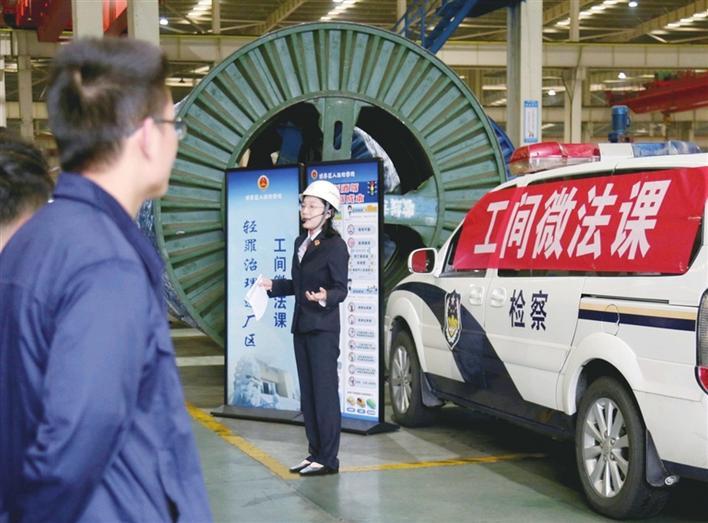猇亭區(qū)檢察院干警入企開(kāi)展“工間微法課”活動(dòng)。
